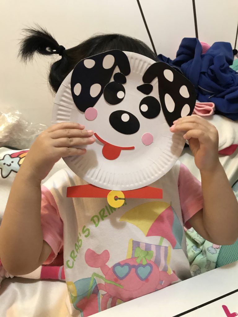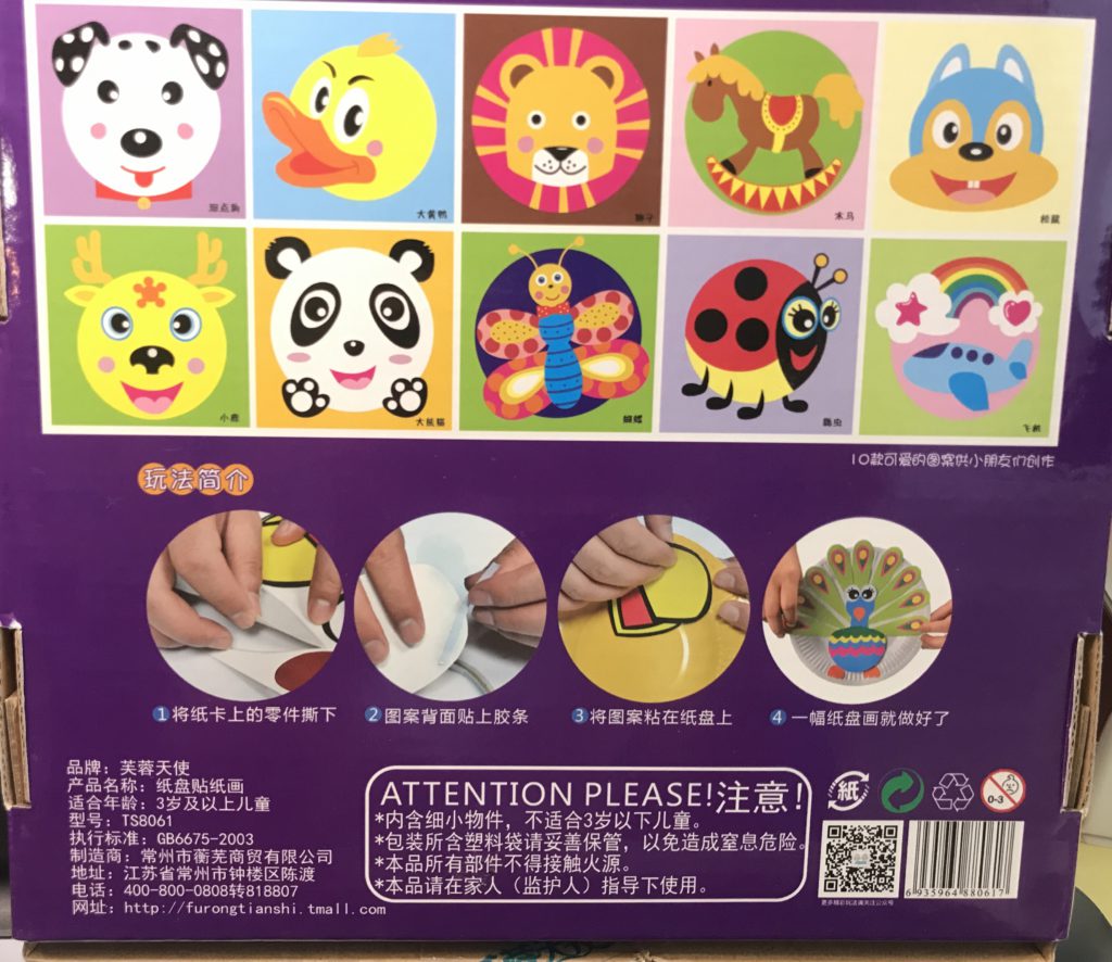 家長只需幫忙貼上雙面膠紙於底部,讓孩子自行撕下膠紙貼及看圖貼在紙盤上便可。好讓他們訓練手眼協調等能能。這個紙盤畫值得推廌給各家長:)