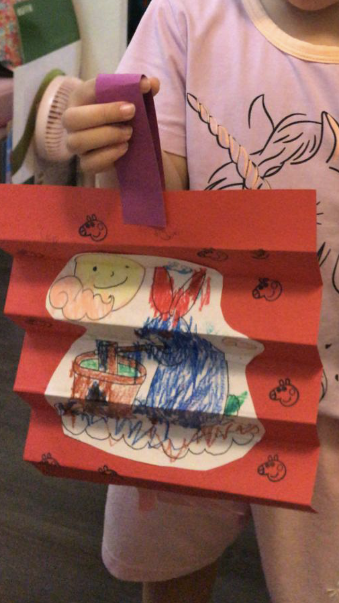 先把雨點形狀貼在孔雀上,再用膠夾夾住孔雀邊。此練習最主要是訓練幼童前二三指控制,及眼手協調。多給幼童細衣夾夾東西有助幫助他們訓練。